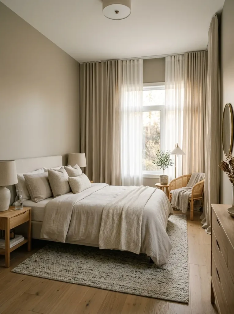 If your room feels tight, switching to soft neutrals like white, beige, or light gray instantly creates a more open feel.