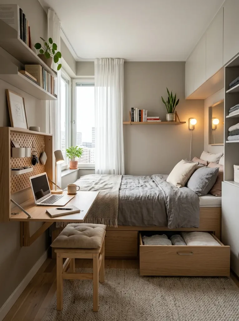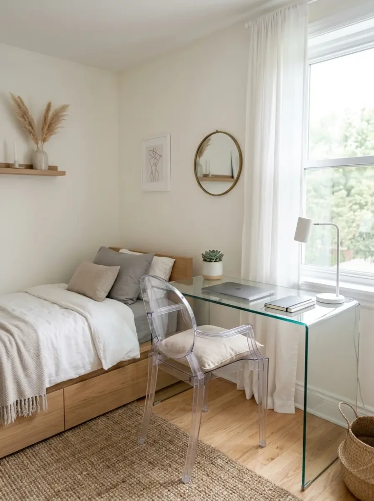 From light colors and mirrors to multi-functional furniture and decluttering, each idea plays a role in transforming your room. And the best part? You don’t need a huge budget to make it happen.