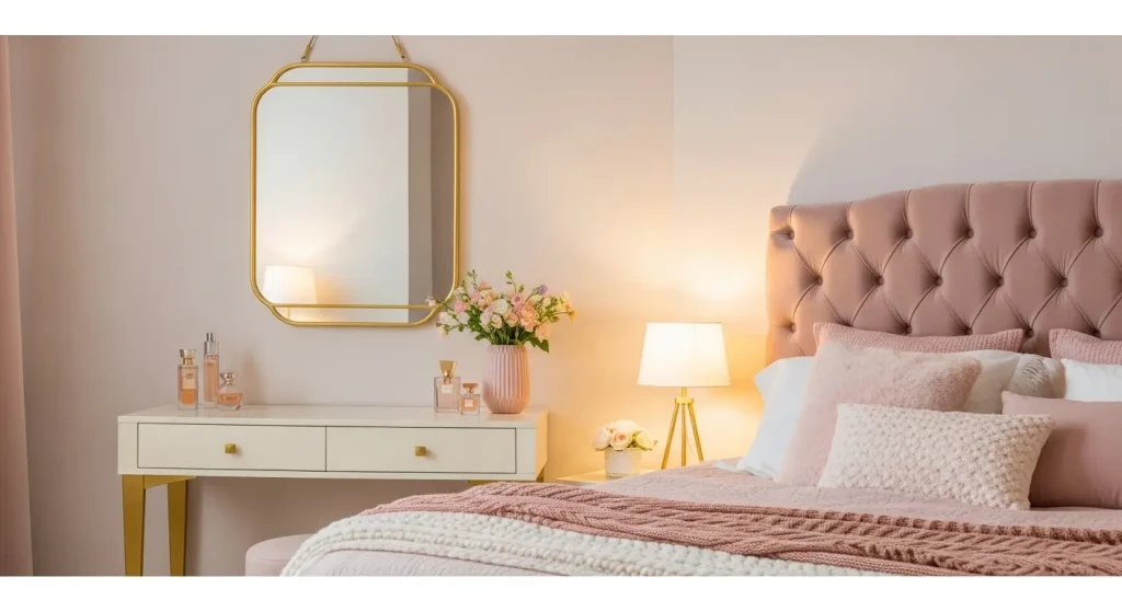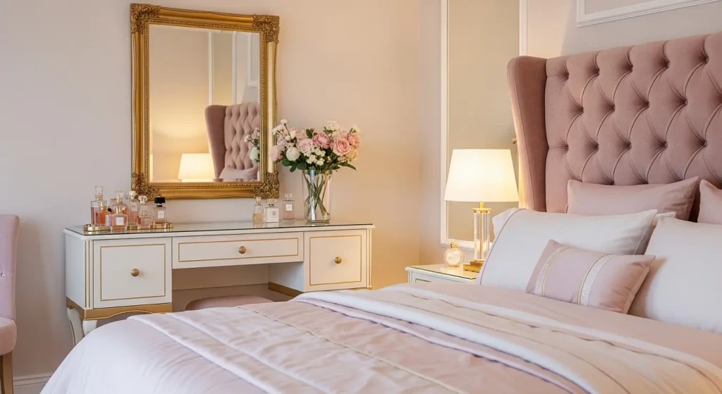 Adding a small vanity area with a mirror and stool can turn your bedroom into a stylish personal sanctuary.