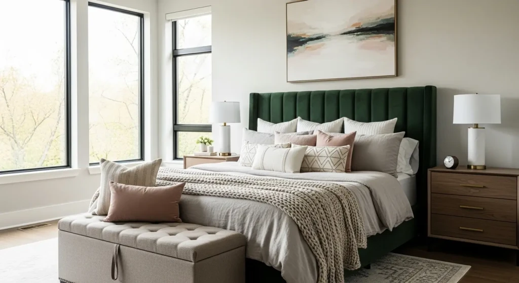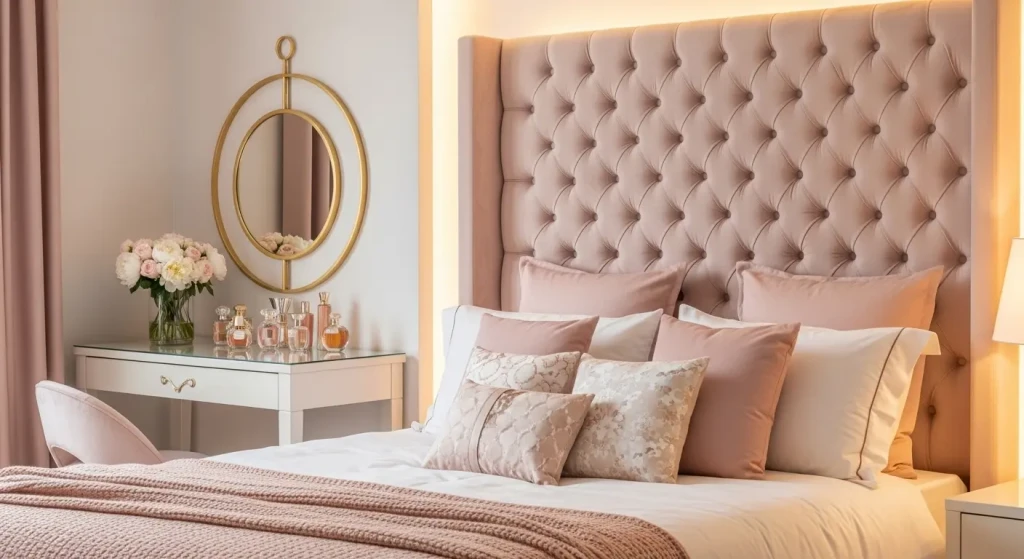 A statement headboard adds instant luxury to your bedroom decor aesthetic without requiring a full room makeover.