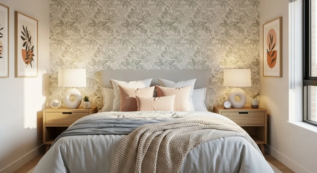 You don’t even need to wallpaper the whole room. A single accent wall behind the bed can completely transform your bedroom decor design.