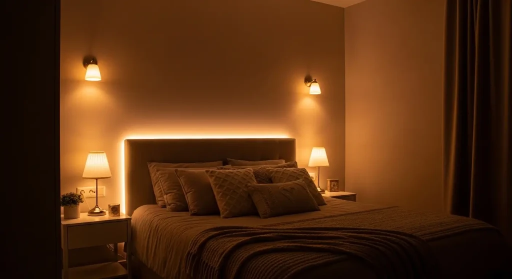 Layered lighting creates a warm and relaxing bedroom decor cozy atmosphere.