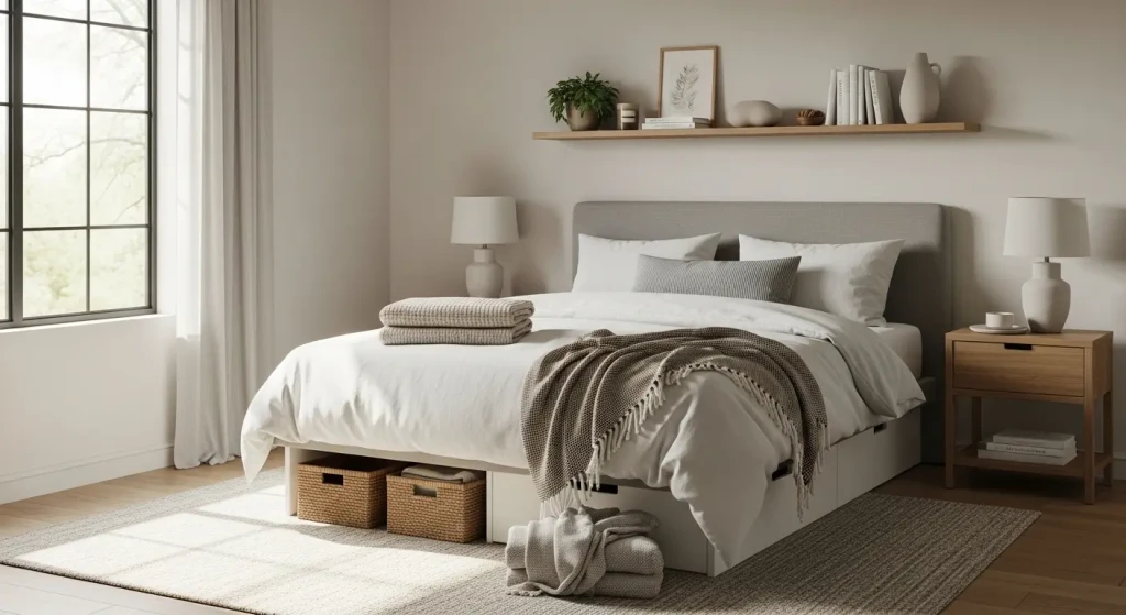 A tidy bedroom instantly feels more relaxing and visually appealing.