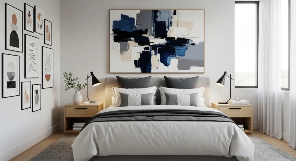 Another powerful bedroom decoration idea is wall art.