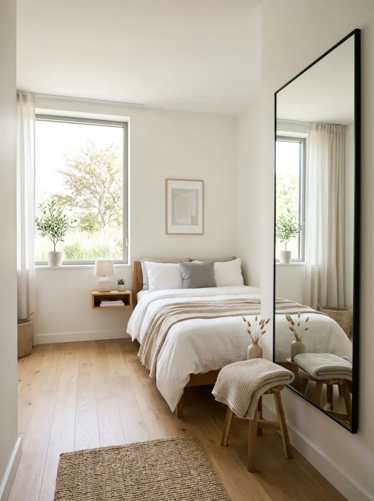 Mirrors are not just for checking your outfit—they’re a powerful design hack. They reflect light and visually double your space.