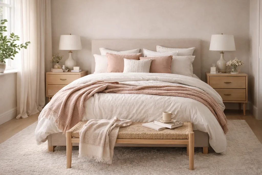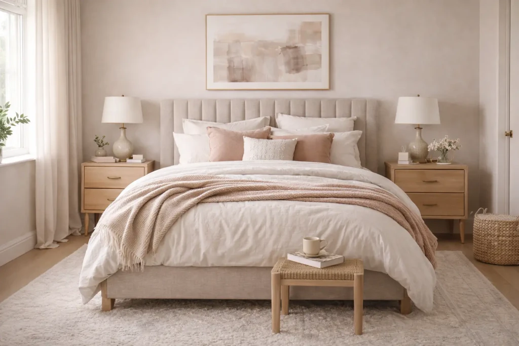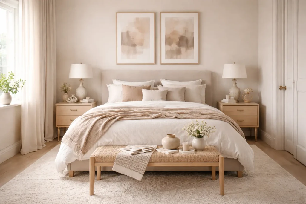 These shades create a calm backdrop for layered bedroom decor. They also make styling easier because almost everything matches.