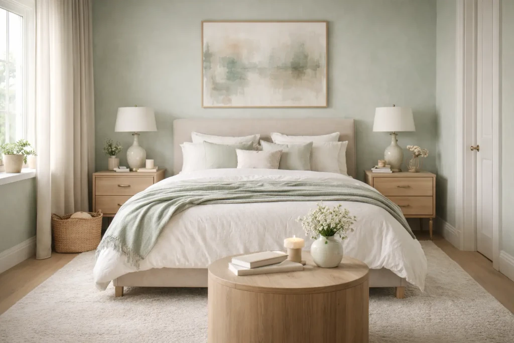 Too many colors create visual noise. A controlled bedroom color scheme feels intentional and relaxing.