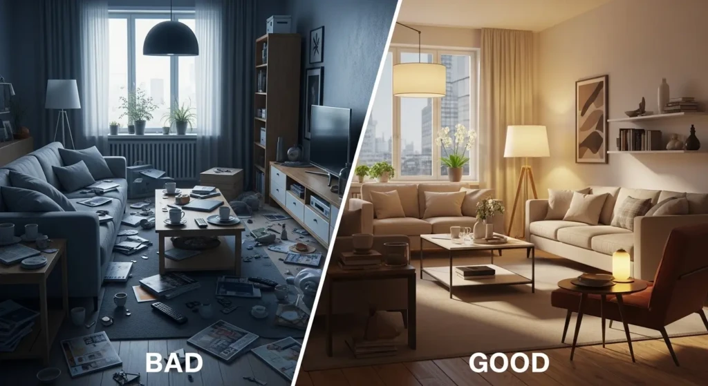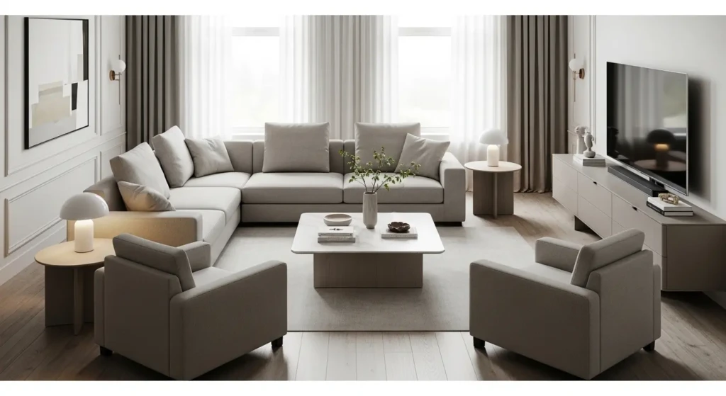 Now let’s talk about something most people ignore—the living room furniture layout. Even expensive furniture looks bad if it’s arranged poorly.