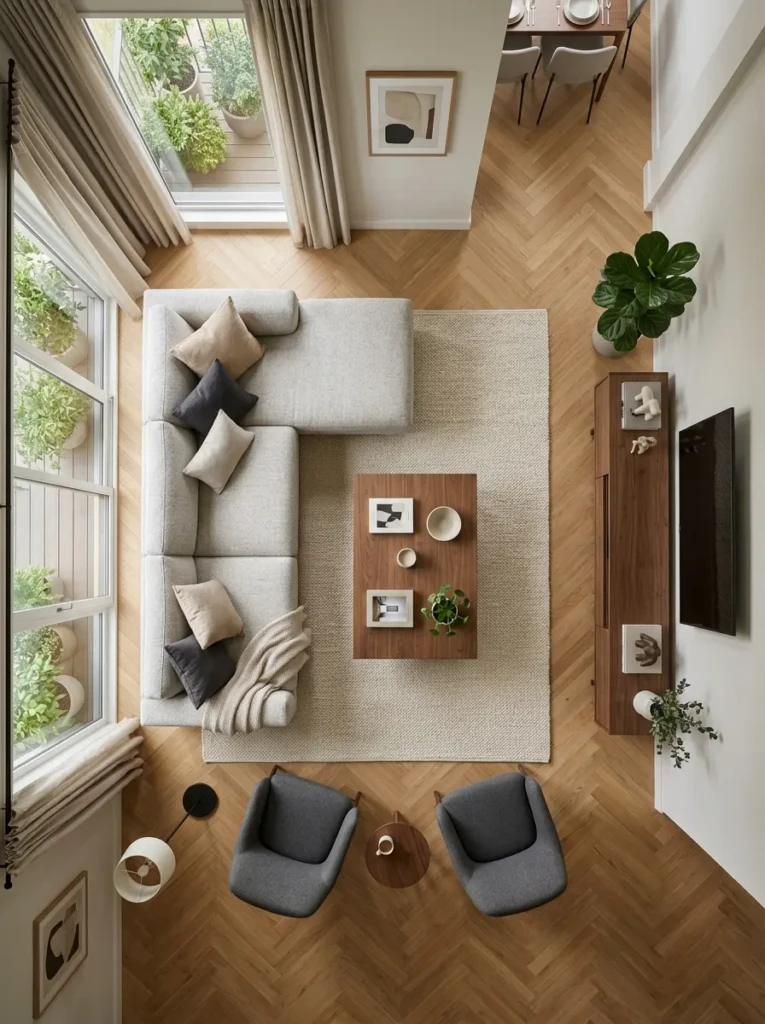 A smart living room furniture layout makes your space feel bigger, more organized, and more premium.