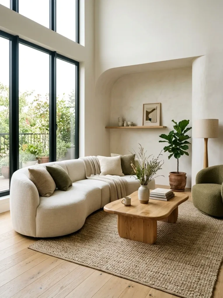 - Curved sofas – Soft, luxurious look