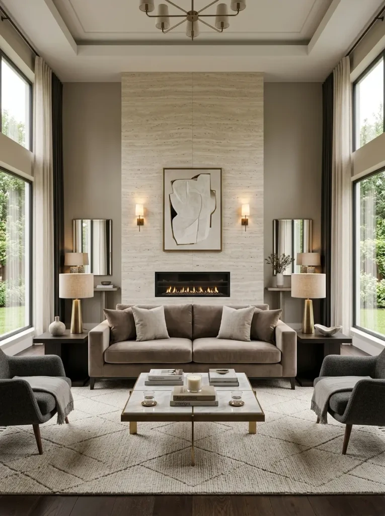 Luxury spaces don’t rely on color alone. They use a mix of materials to create depth.
