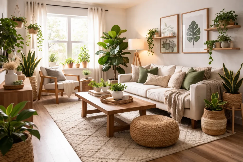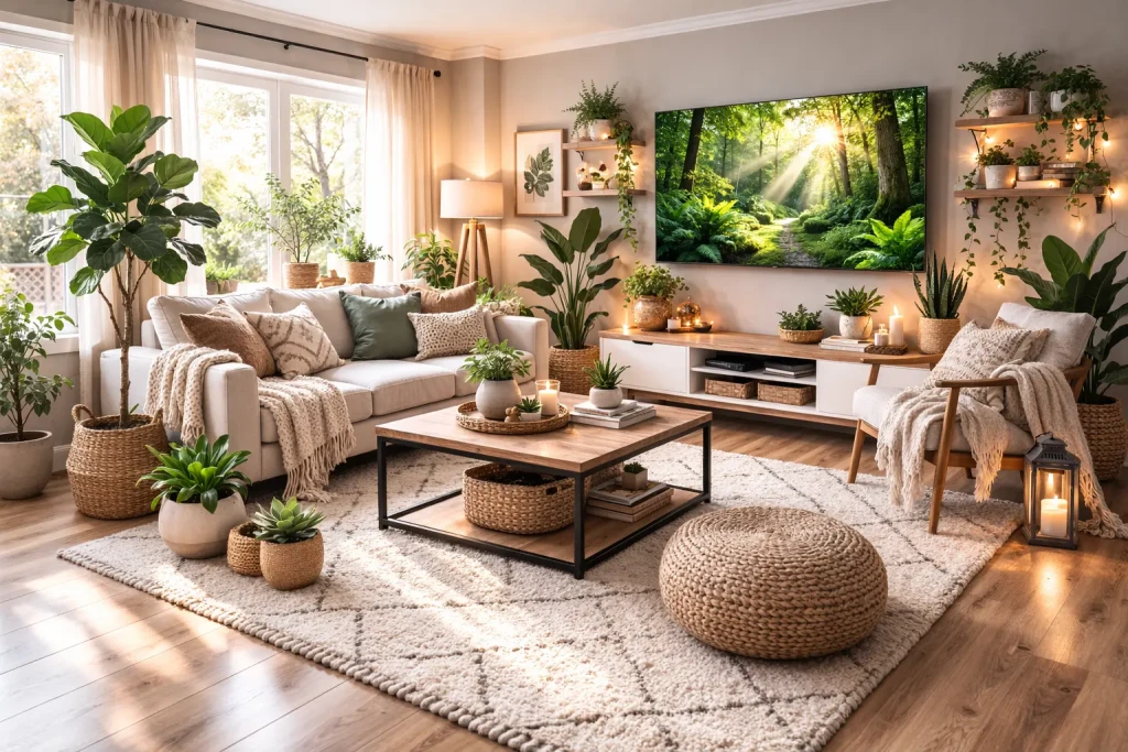 - Cozy organic: Soft textures, warm wood, natural fibers