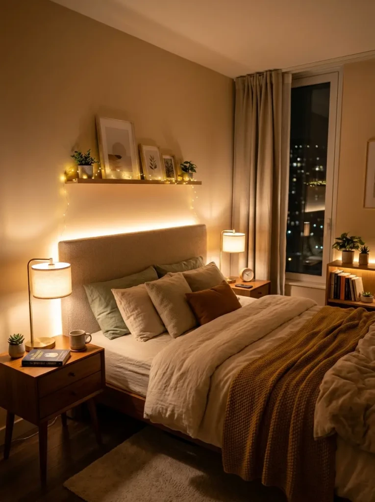 - Soft bedside lamps