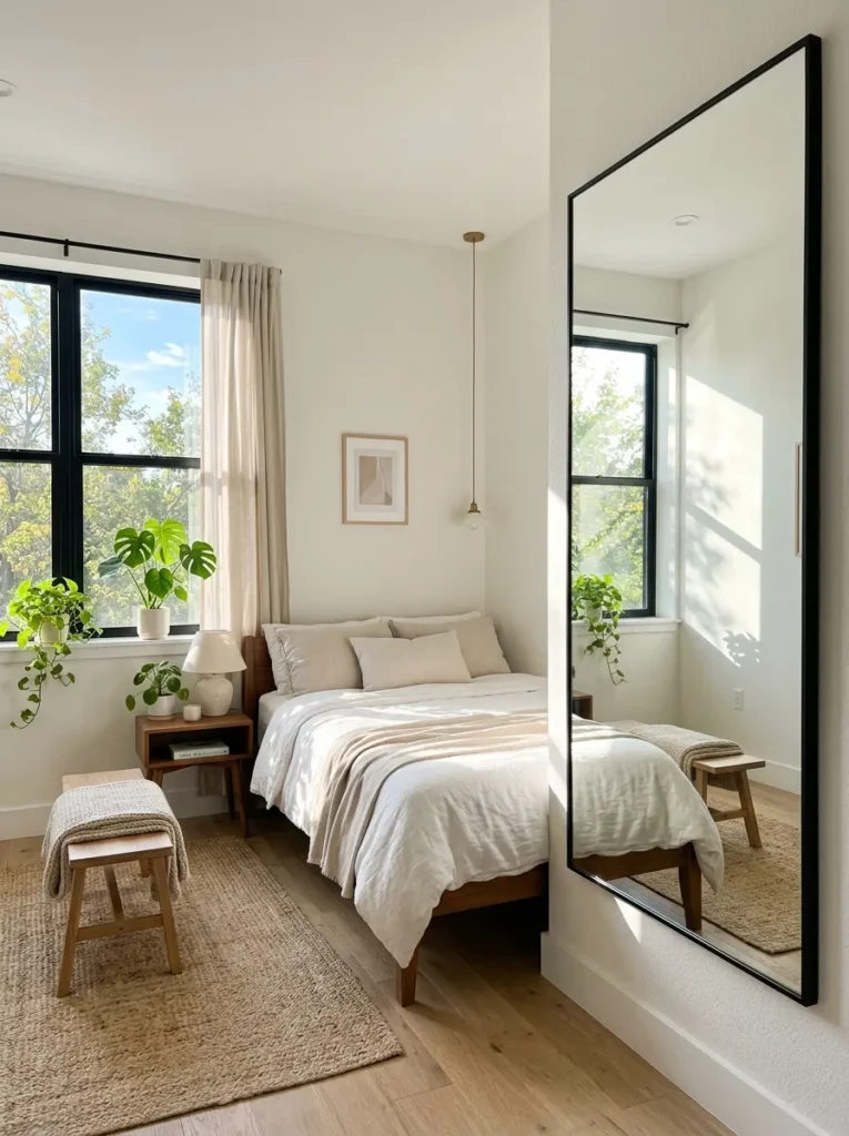 Place a large mirror opposite a window, and boom—your room instantly feels brighter and larger.
